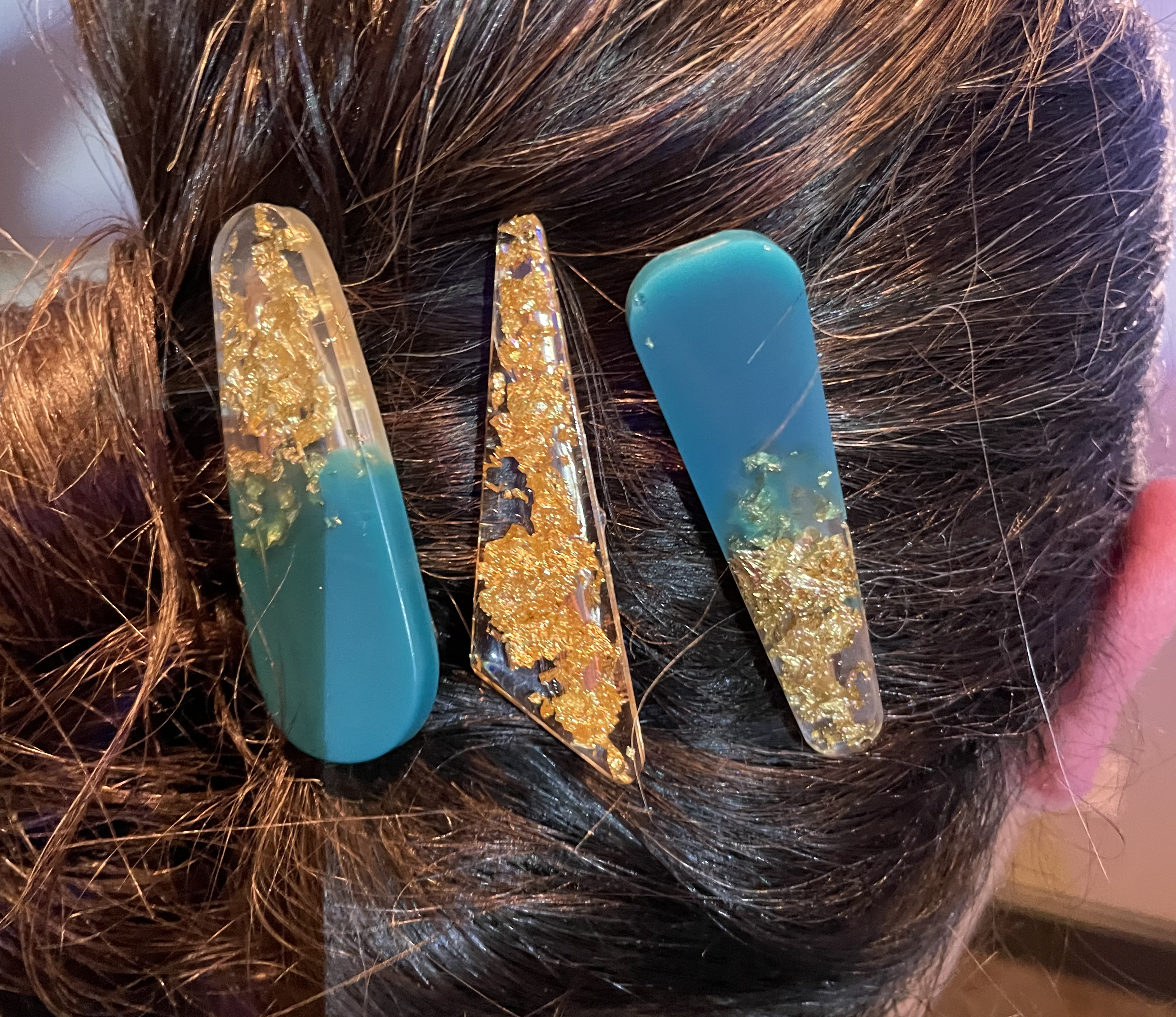 Blue, White and Gold Barrettes
